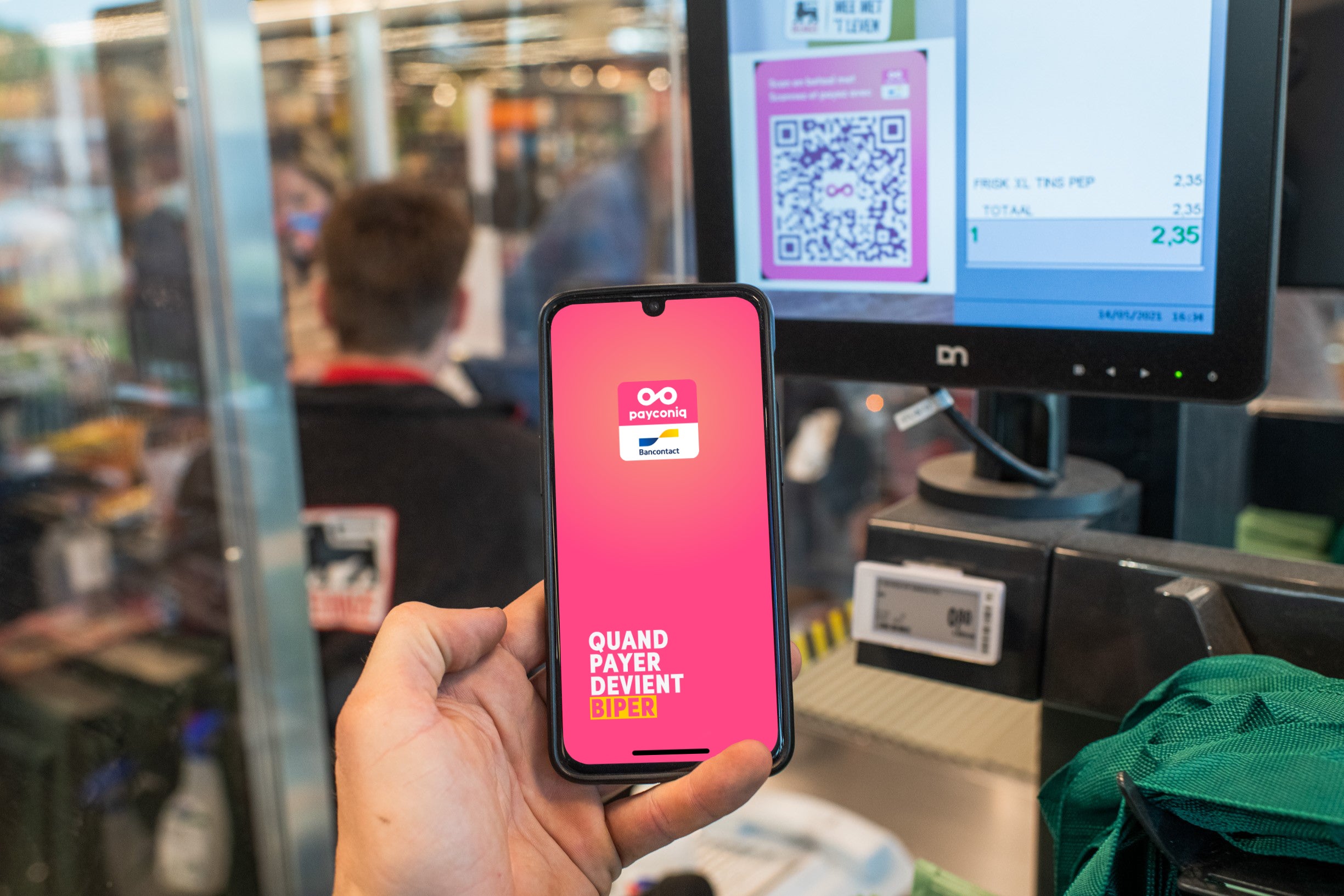 À partir de cet été, les clients qui le souhaitent pourront également régler leurs achats en utilisant l'application Payconiq by Bancontact sur leur smartphone (ou une application bancaire proposant le mode de paiement Payconiq). À cette fin, toutes les caisses traditionnelles et automatiques seront équipées d'un code QR Payconiq intégré qui sera scanné à l’aide du smartphone pour transférer le montant à payer. Le paiement est effectué après confirmation par le code PIN, l'empreinte digitale ou la reconnaissance faciale dans l'application Payconiq by Bancontact. Le client reçoit une confirmation sur son smartphone, et son ticket de caisse servira de preuve d'achat.